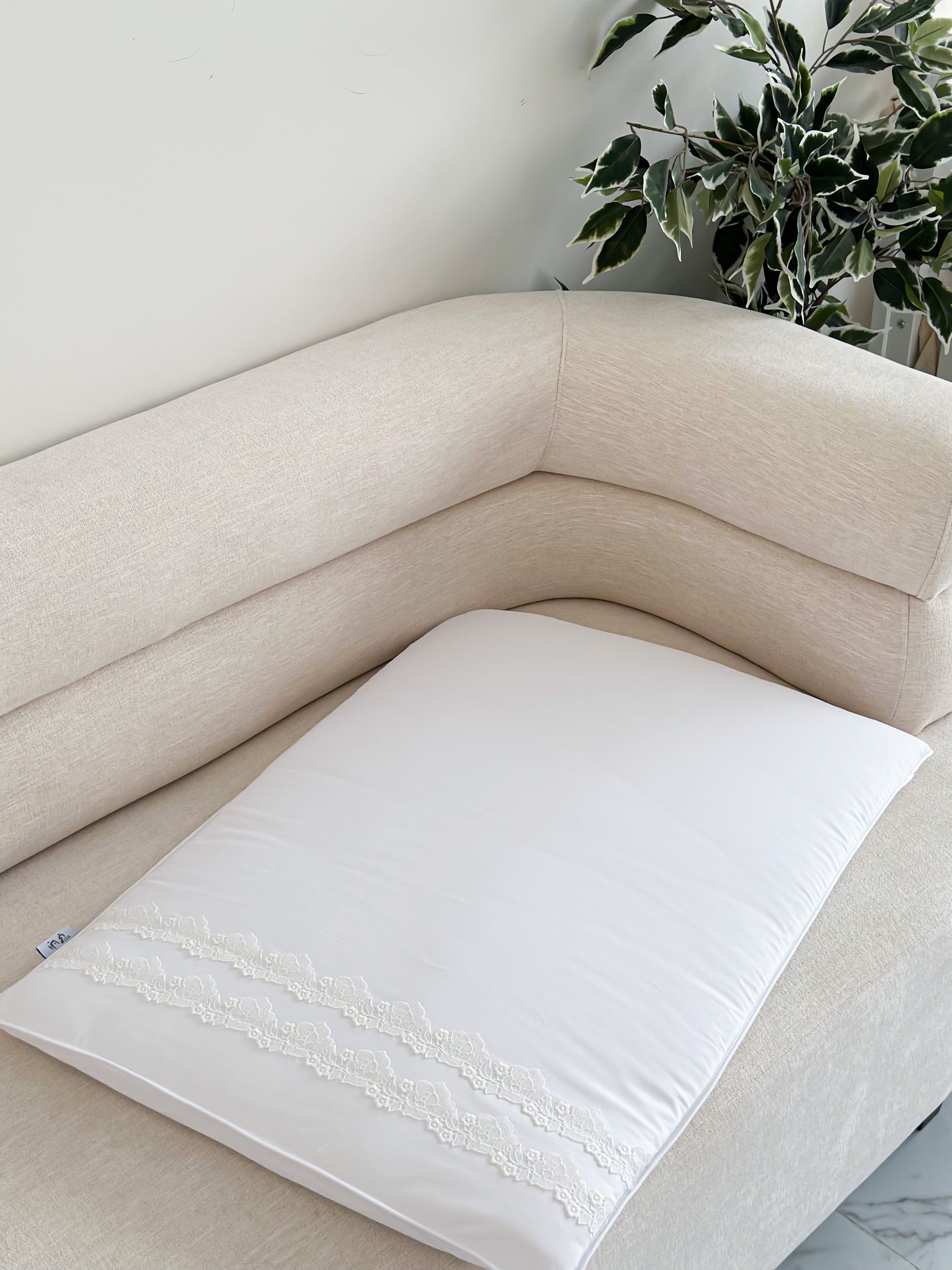 “مفرش بيبي ناعم من القطن الفاخر مزين بدانتيل أنيق، يوفر راحة ونعومة لطفلك.